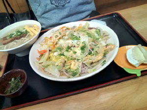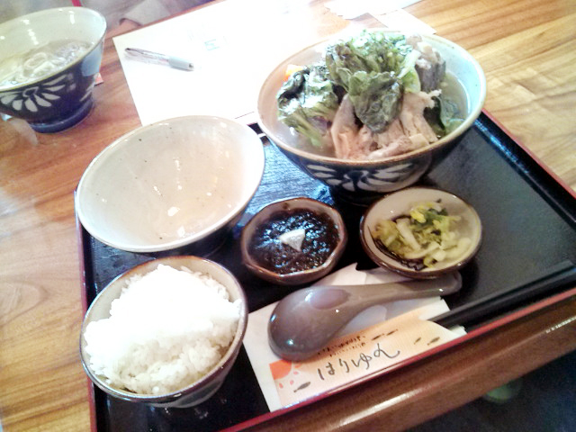 本業は居酒屋みたいだけど、 ランチも定食屋的に営業しているみたい。 「はりゆん」というお店。 で、ここのほねじる定食。 これが結構いけたな~。 ちょっと薄味だったりもするけど・・・。 これで、580円。 お買い得感はあるかもね。 他にはランチで沖縄そばや海鮮丼もやってました。 こっちのほうもちょっと気になるよなぁ。 |