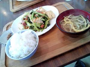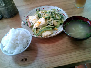 嘉手納のお店。 実は海の見えるそば屋に行く予定が、 なんと月曜日が定休日・・・。 とゆーことで、どこでもいから!?ってことで、 飛び込んだのがこのお店だったり。 ちょうどネーブル嘉手納の北側駐車場のすぐ裏手にあります。 まあ、ちょっとわかりづらいかなぁ。 →ネーブル嘉手納 パッと見、ちょっと大丈夫か!?って感じ。 まず間口が狭いのと、 なぜかコンビニに置いてあるようなホットショーケースが。 勿論、中身は空・・・。 あやしさ満点ですが、もう空腹には勝てないので入っちゃいました。 入ってみると、意外と店内は広い。 ただ、お店に置いてあるものの統一感がまるでない。 田舎のおじいちゃんの家のようにカオスに満ち溢れたオブジェ類。 ある意味、おうちごはん感覚でたべられるかも。 すでにお客さんは3名。 皆さん近所の常連さんって感じ。 おっ、こーゆー沖縄の定食屋さんって外れがないんだよねぇ。 で、迷わず本日のサービスランチ「ごーやちゃんぷるー」をチョイス。 通常価格が650円のところを、なんと500円にて。 ワンコインってのは嬉しいところ。 で、こんな感じ。 極めてオーソドックス。 ただ、食べてみると、これがけっこうイケる。 特にチャンプルーに入ってる島豆腐にしっかり味が染みてる。 ボリュームのほうも申し分無し。 見た目よりも結構ありますな。 勿論、完食! 行く機会があればってところだけど、 近所にあればはまりそうではあるかもなぁ。 PR |